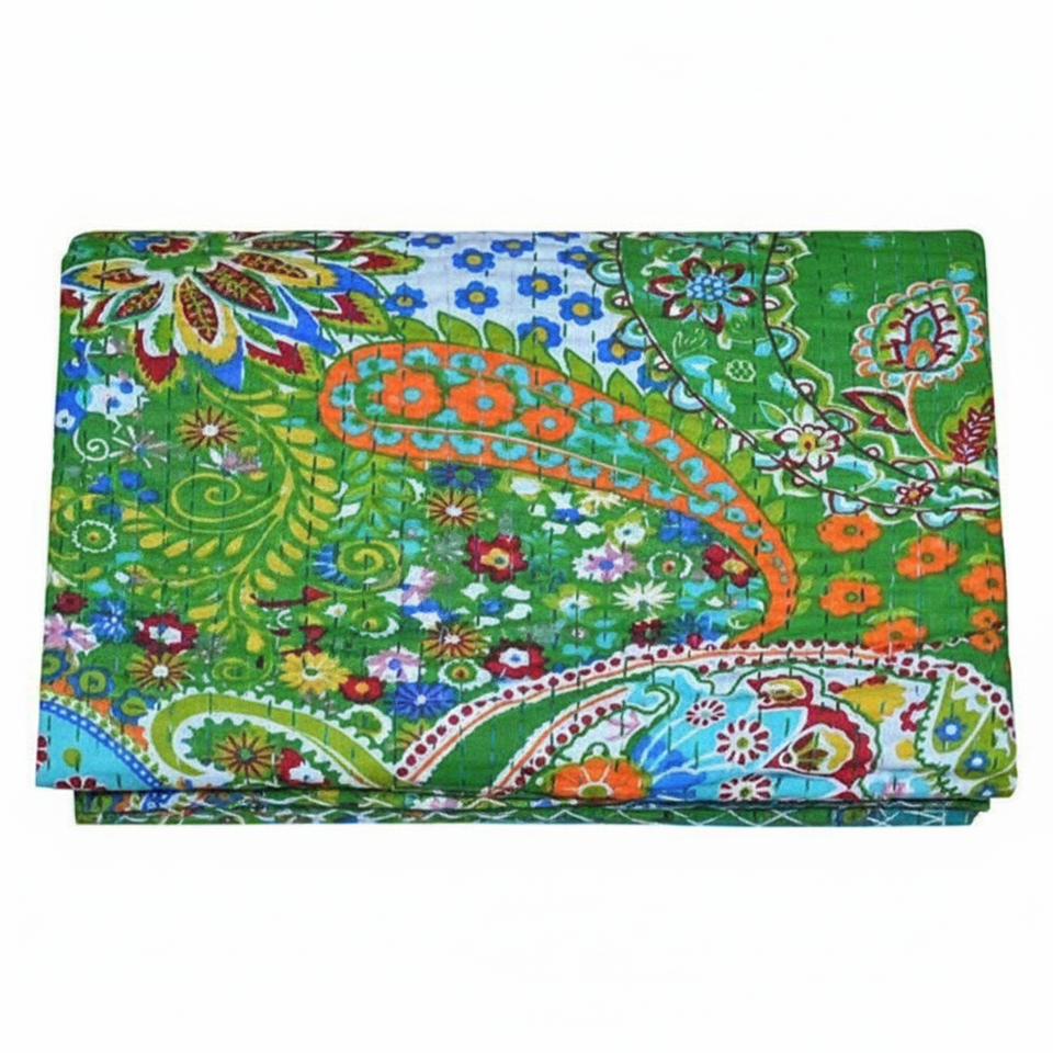ผ้านวม Kantha โบฮีเมียนทำด้วยมือผ้าฝ้ายวินเทจกลับด้านได้ผ้าห่มโยน Paisley gudari ซักได้สำหรับโรงแรม