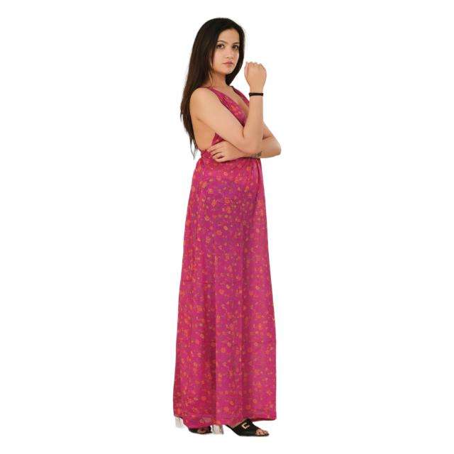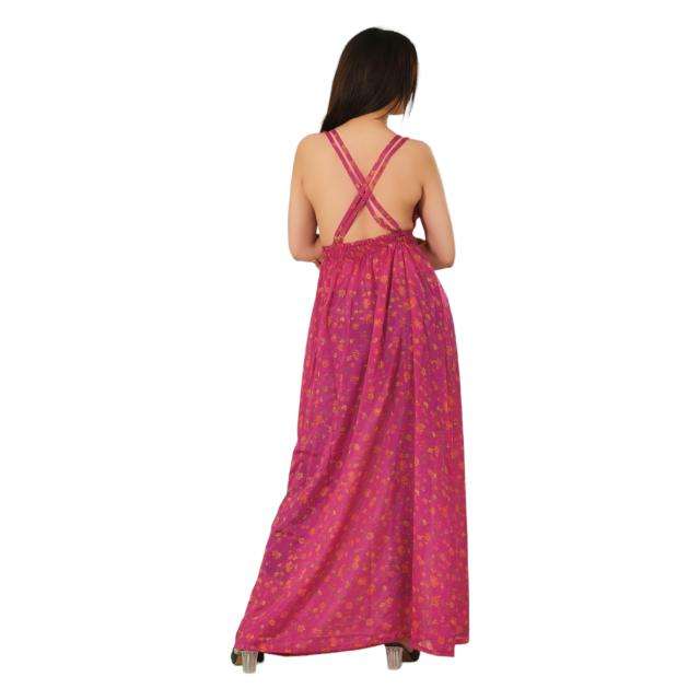 ชุดเดรสผ้าไหมยาวโบฮีเมียนสำหรับผู้หญิงวินเทจส่าหรียาวหนึ่งไซส์พอดีตัวชุดใส่ตอนเย็นหรือเทศกาลหรูหรา