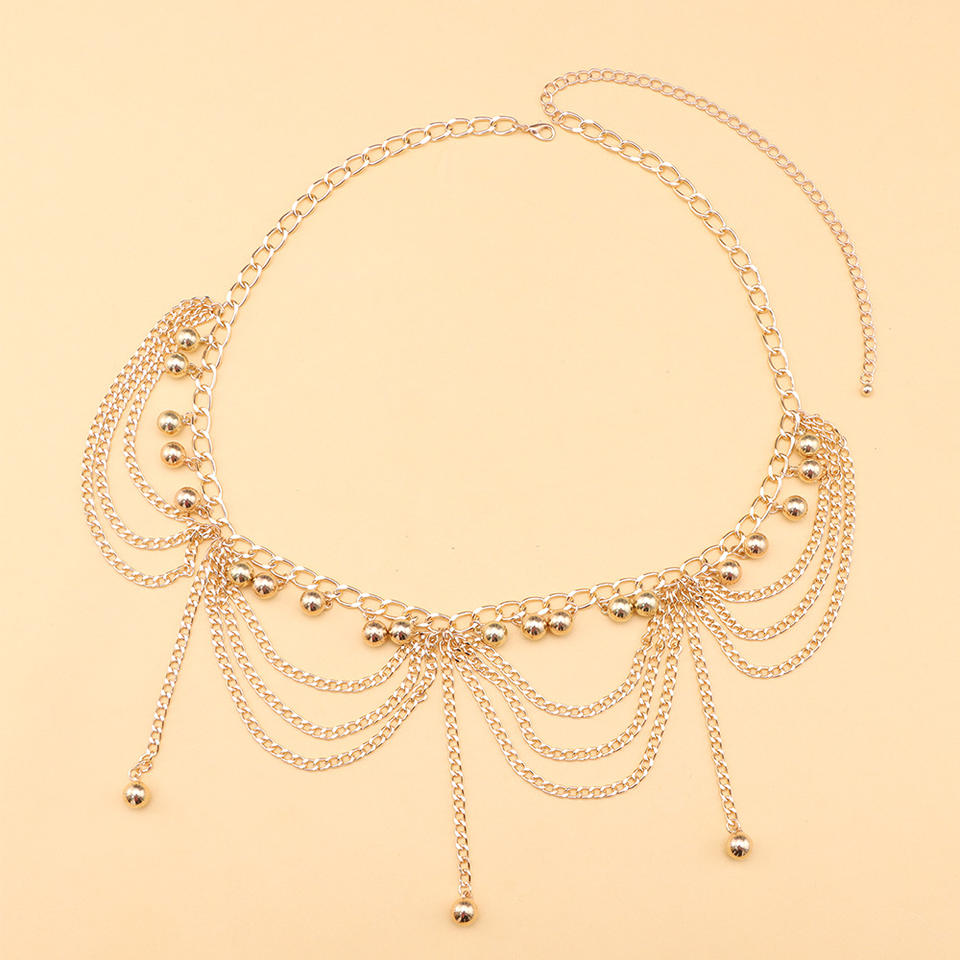 โซ่คาดเอวแบบโบฮีเมียนหลายชั้นประดับพู่ วัสดุโลหะผสมสังกะสี เครื่องประดับสำหรับผู้หญิง เหมาะสำหรับงานปาร์ตี้
