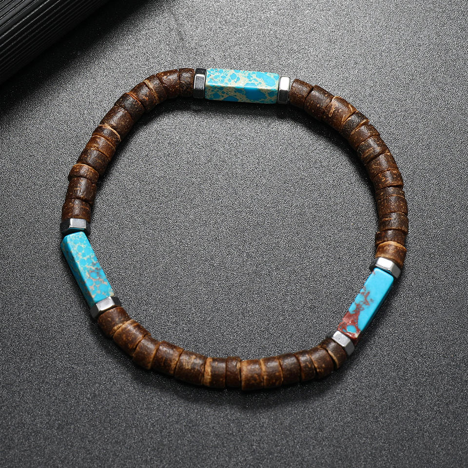 โบฮีเมียนธรรมชาติสร้อยข้อมือลูกปัดแจสเปอร์จักรพรรดิ, สร้อยข้อมือกะลามะพร้าวสีน้ําตาลวินเทจสําหรับผู้ชายผู้หญิง
