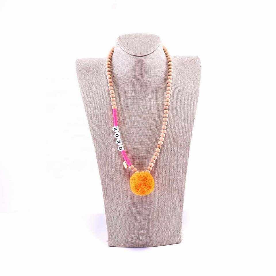 ชุดสร้อยคอโบฮีเมียนสำหรับเด็กผู้หญิงน่ารักบอลพู่ห้อยจี้ลูกปัดไม้สร้อยคอ