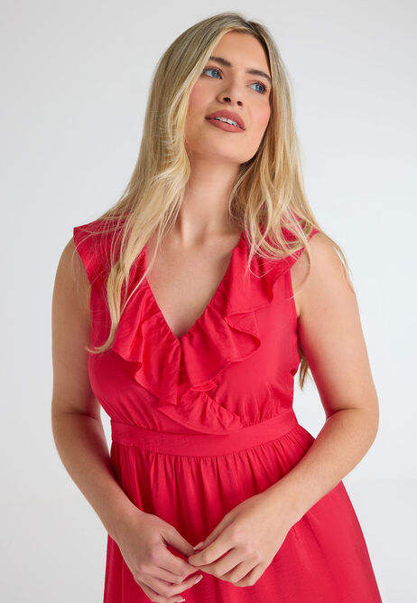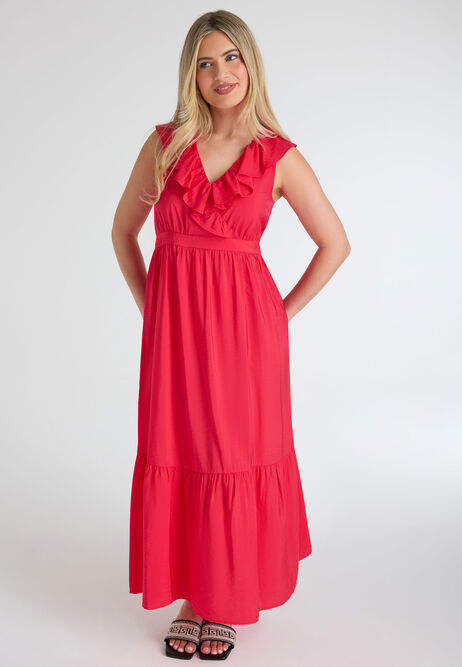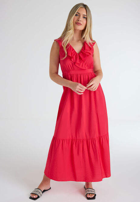 เดรสยาวสไตล์โบฮีเมียนสำหรับผู้หญิงชุดเดรสยาวสีแดงสวยสำหรับใส่ไปทะเลชุดเดรสยาวคาฟตันคอวี