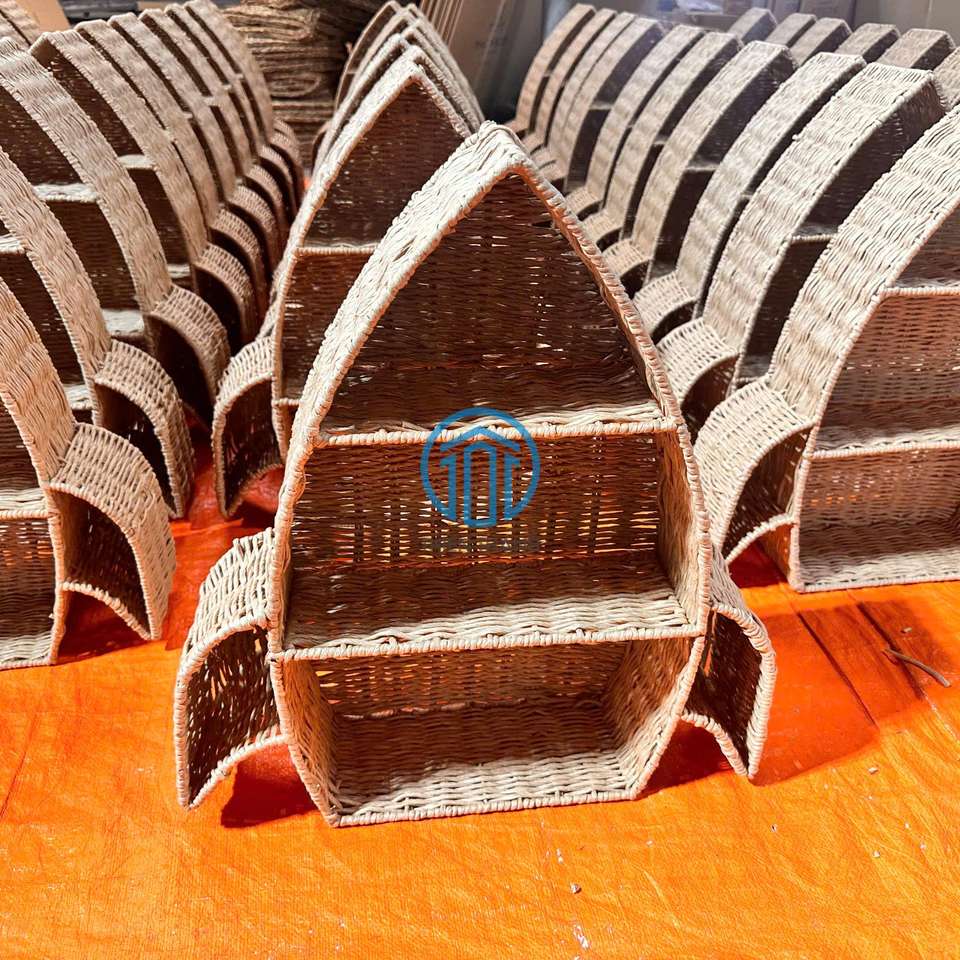 ชั้นแขวนกระดาษสไตล์โบฮีเมียนชั้นวางของติดผนังชั้นวางติดผนังแบบแขวนทำจากหวายตกแต่งผนังชั้นวางของสำหรับเด็กห้องเด็ก