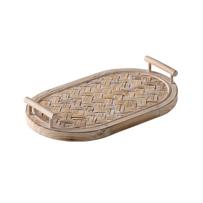 ชุดถาดเสิร์ฟไม้ไผ่สไตล์โบฮีเมียน รูปทรงสี่เหลี่ยมและวงรี สำหรับตกแต่งโต๊ะ คาเฟ่ และบ้าน