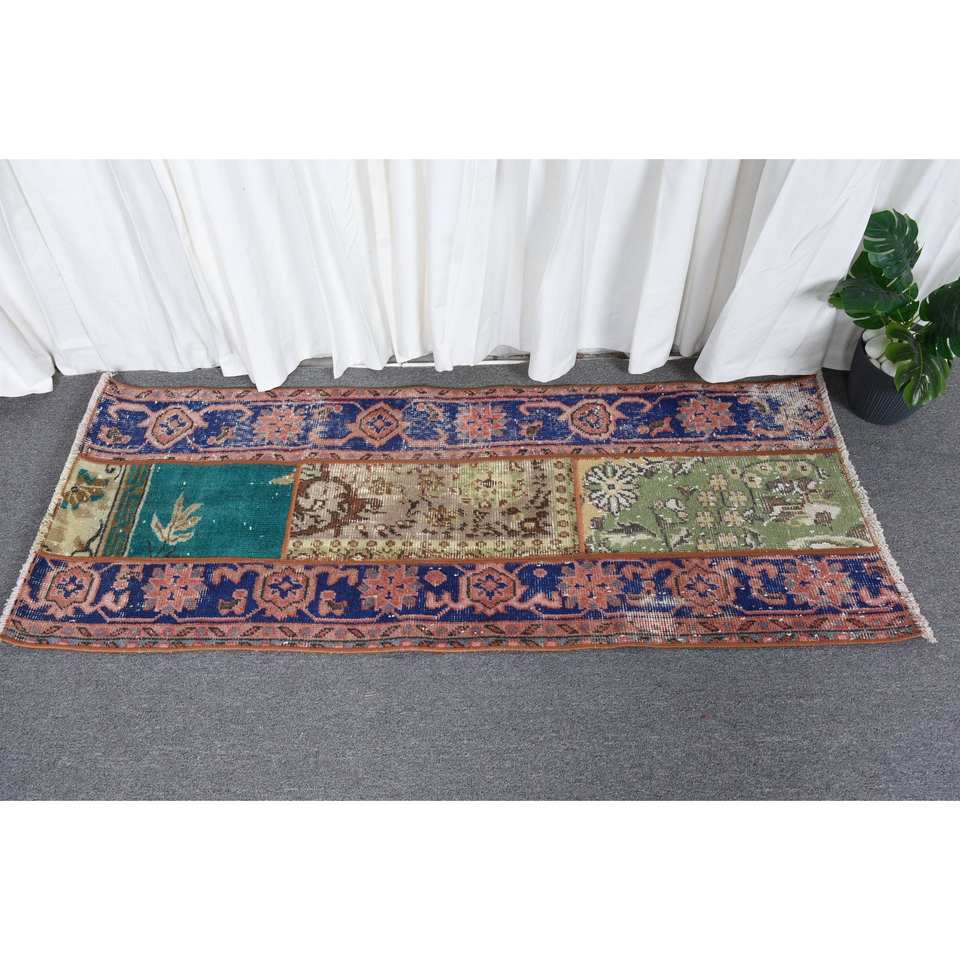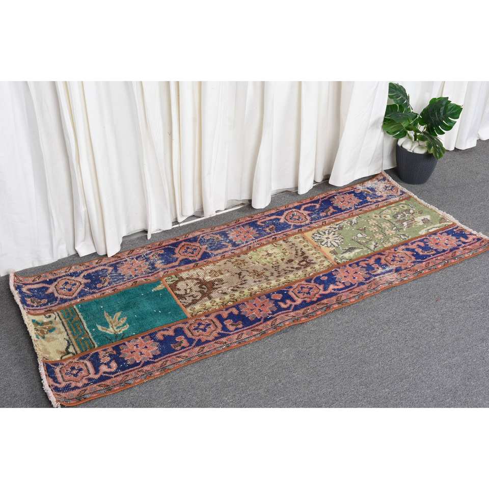 พรมขนแกะสีเขียวน้ำเงินสไตล์โบฮีเมียน1.9 x 4.9ft แบบตุรกีผืนใหญ่ทรงสี่เหลี่ยมผืนผ้าลวดลายนามธรรมสำหรับด้านหลังเป็นยางสำหรับห้องนอน