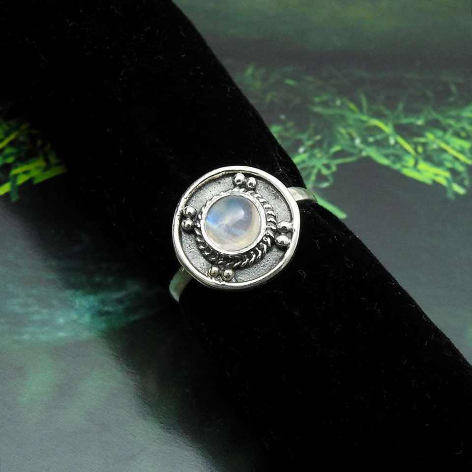 แหวนสไตล์โบฮีเมียนคลาสสิกสำหรับผู้หญิง ทำจากเงินแท้ 925 ประดับด้วยพลอยมูนสโตนสีรุ้ง สวยงาม เหมาะสำหรับเป็นแหวนหมั้นหรือแหวนแต่งงานสำหรับสาวๆ