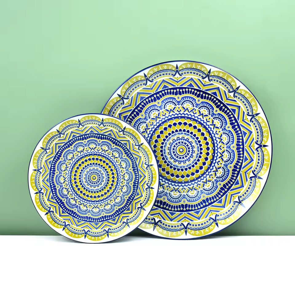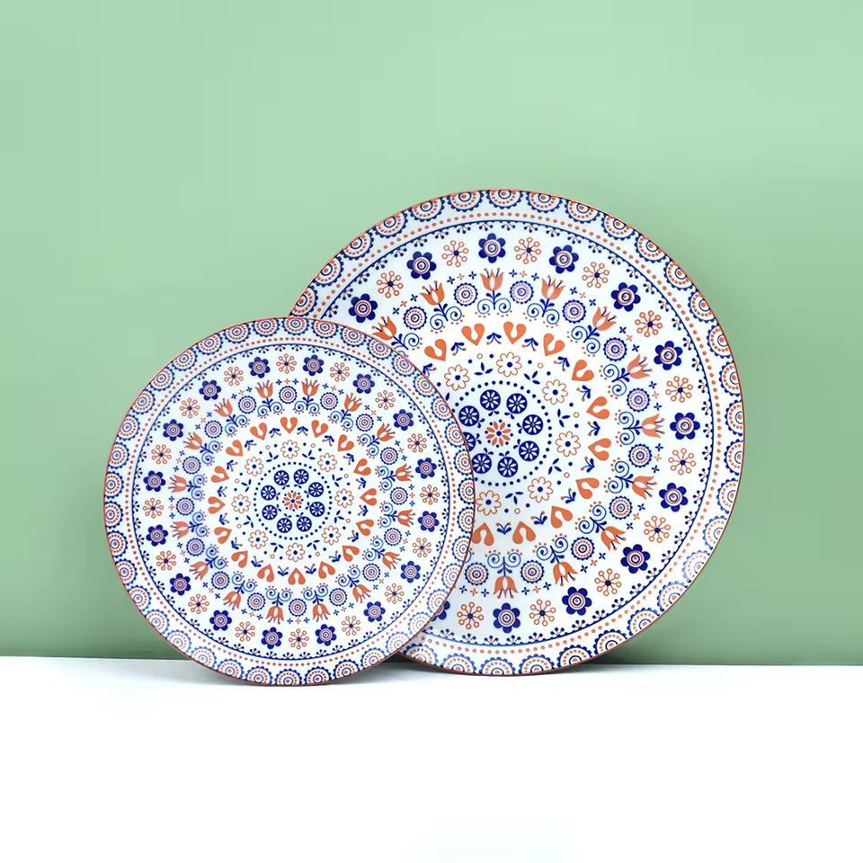 จานอาหารค่ำพอร์ซเลนเซรามิกสไตล์โบฮีเมียนทนทานเป็นมิตรกับสิ่งแวดล้อมถาดเสิร์ฟของว่างสำหรับโรงแรมมี24ชิ้น