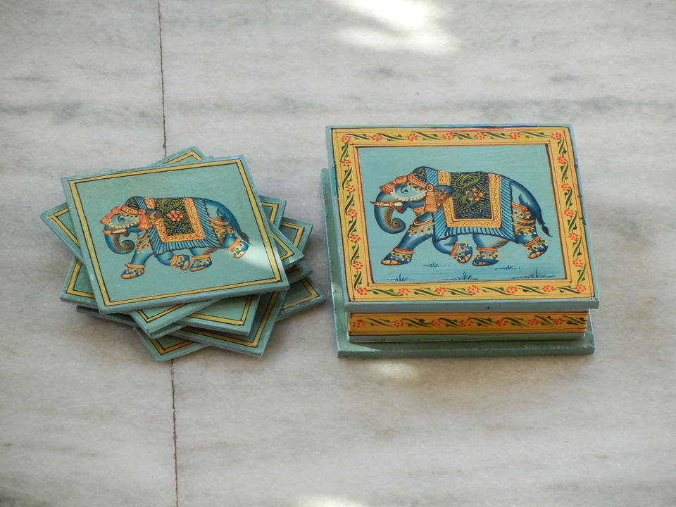 จานรองแก้วไม้วาดด้วยมือสไตล์โบฮีเมียนโต๊ะของศิลปินตกแต่งโต๊ะที่รองแก้วและแผ่นรองแก้วสำหรับเครื่องดื่มภายในบ้าน