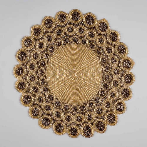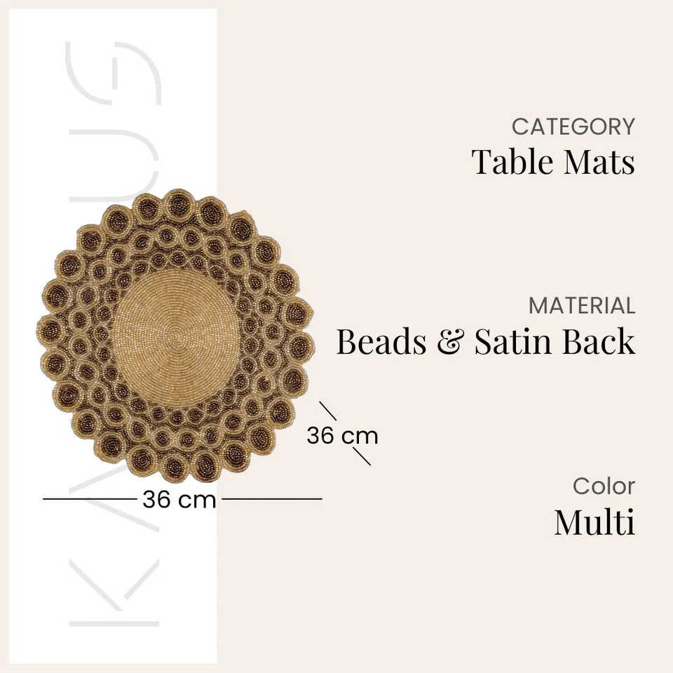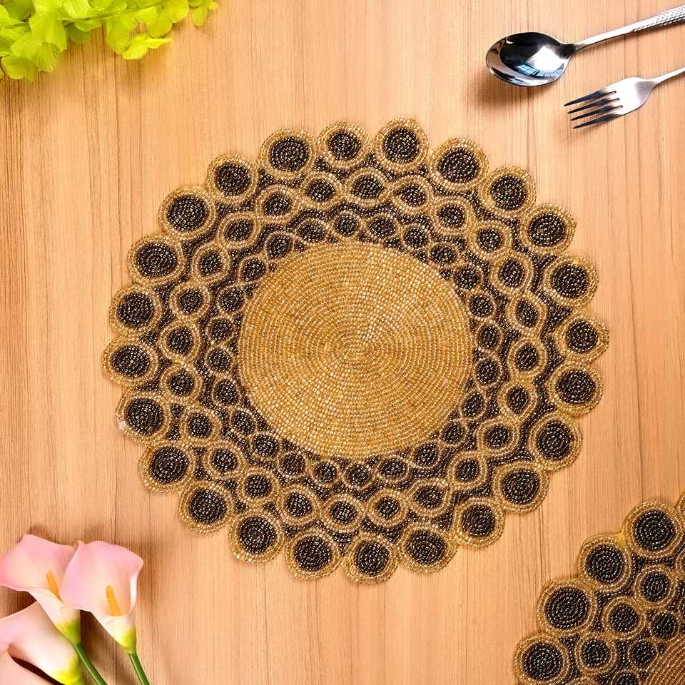แผ่นรองจานสไตล์โบฮีเมียนทำมือประดับลูกปัด ผ้าซาติน ด้านหลังเป็นผ้า รักษ์โลก ดูแลง่าย สำหรับบ้าน ครัว ร้านอาหาร ราคาประหยัด