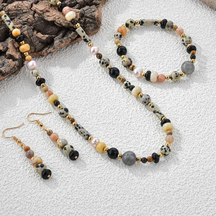 ชุดเครื่องประดับมุกสแตนเลสสไตล์โบฮีเมียนประดับด้วยหินธรรมชาติสำหรับผู้หญิง สวมใส่ได้ทุกวัน สร้อยคอ/ต่างหู/กำไลข้อมือ - ของขวัญสุดเก๋ทันสมัย