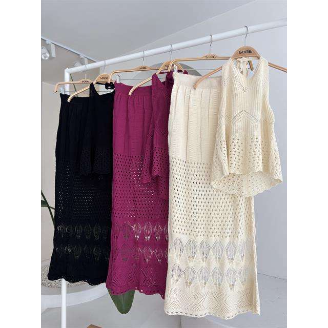 ชุดผ้าถักสไตล์โบฮีเมียนแบบเปิดหลังลายฉลุ รุ่น 10083-025