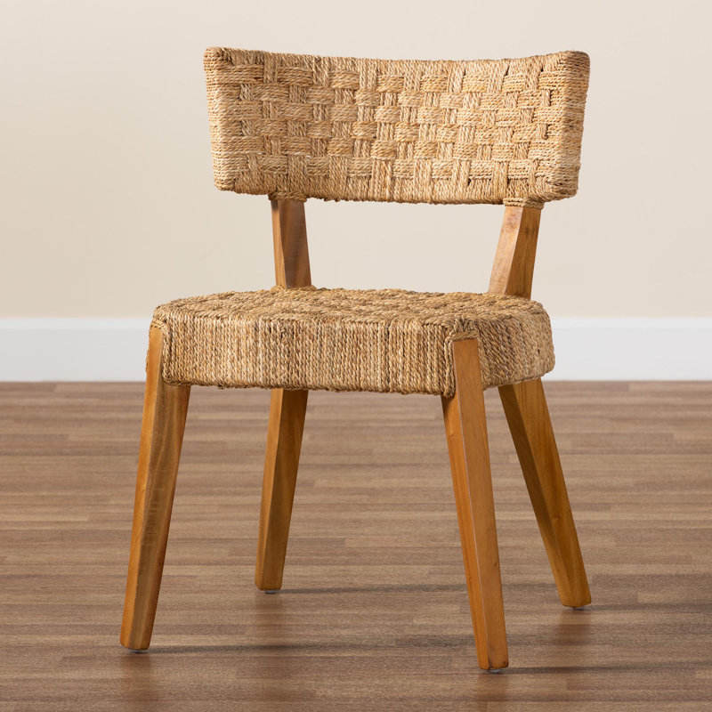 เก้าอี้รับประทานอาหารไม้มะฮอกกานีและหญ้าทะเลสไตล์โบฮีเมียนเก้าอี้ทอเพื่อความสบายและมีสไตล์