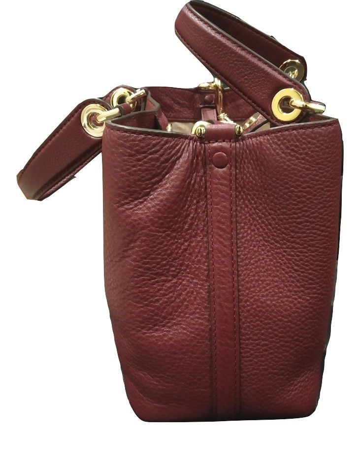 กระเป๋าถือหนังแท้สีแดงเข้มสไตล์โบฮีเมียนสำหรับผู้หญิงพร้อมฝาปิดเปิดกันขโมยซับในโพลีเอสเตอร์ดีไซน์ทันสมัยใหม่