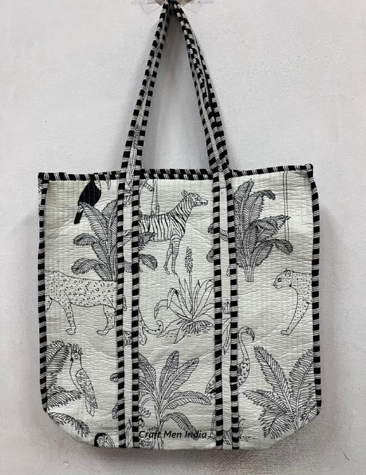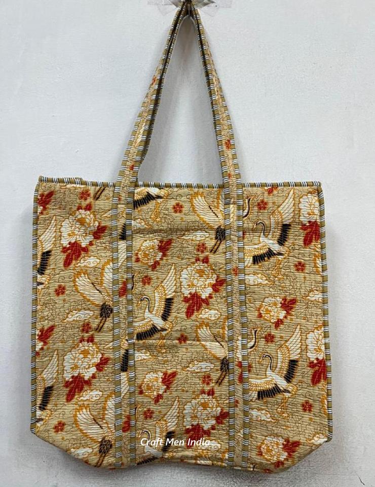 กระเป๋าผ้าควิลท์โบฮีเมียนสำหรับผู้หญิงกระเป๋าสะพายไหล่ผ้าฝ้ายพิมพ์ลายสำหรับร้านขายของชำช้อปปิ้ง