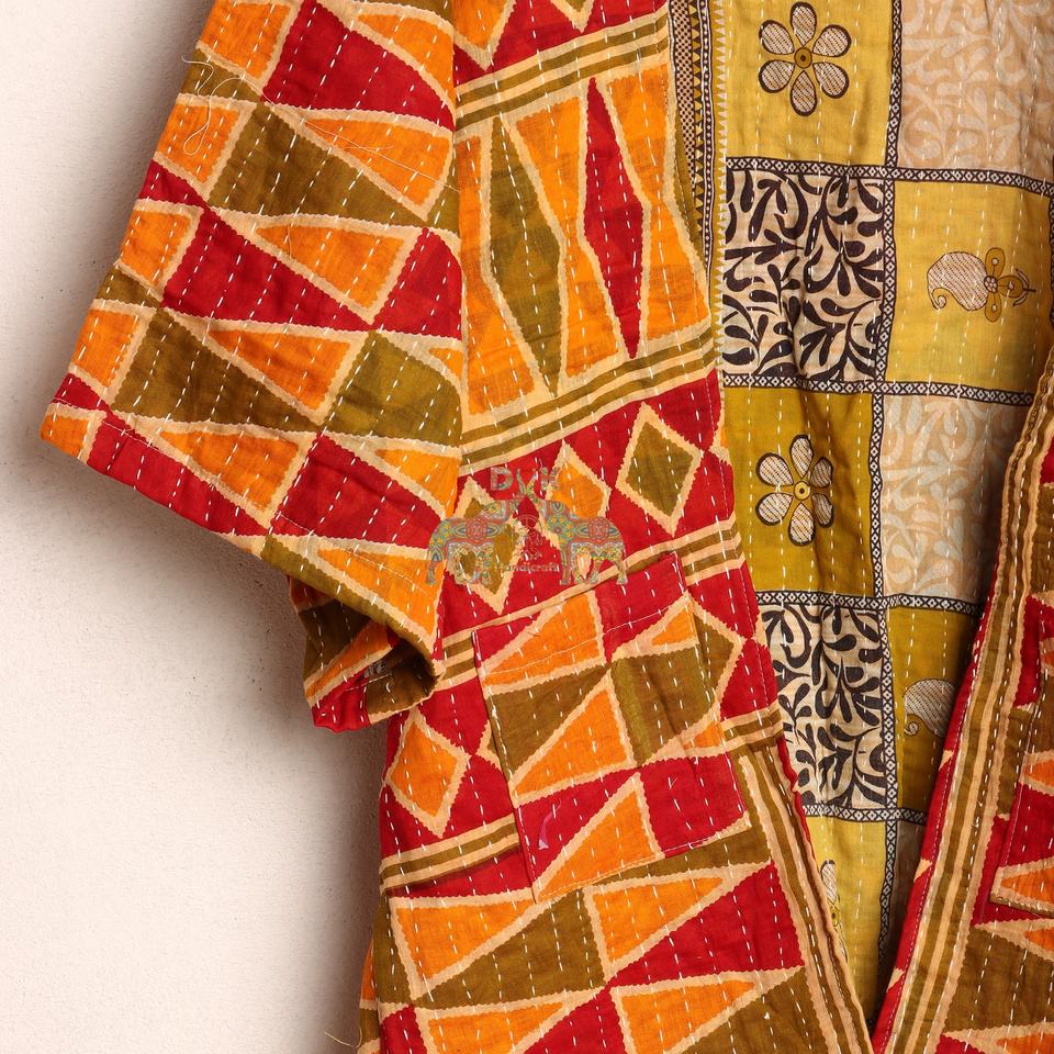 แจ็คเก็ต Kantha วินเทจ-ผ้าฝ้ายชนิดของเนื้อผ้า