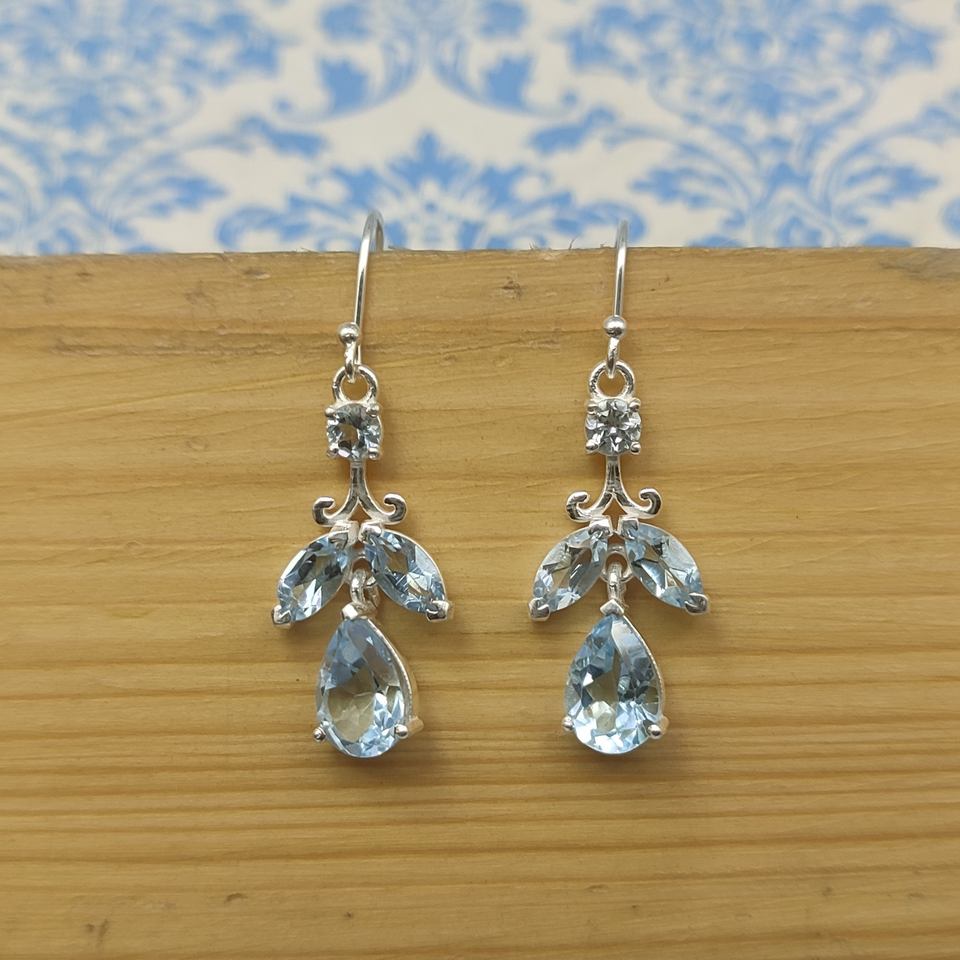 925สไตล์วินเทจโบฮีเมียนสเตอริงเงินสีฟ้าบุษราคัมห้อยต่างหู janubary ของขวัญวันเกิดสำหรับผู้หญิงที่ราคาโรงงาน