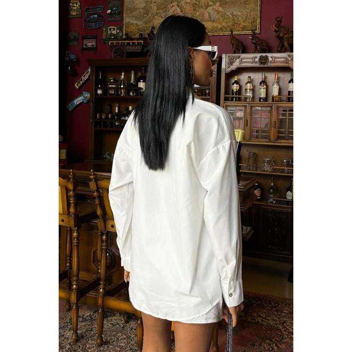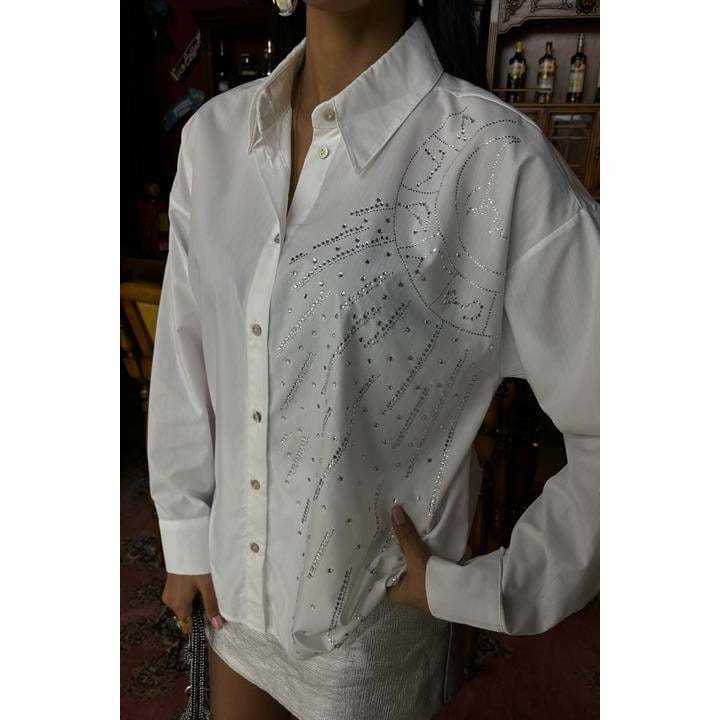 เสื้อเชิ้ตผ้าป๊อปลินสไตล์โบฮีเมียนวินเทจประดับหินลายพระจันทร์ 3440