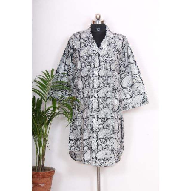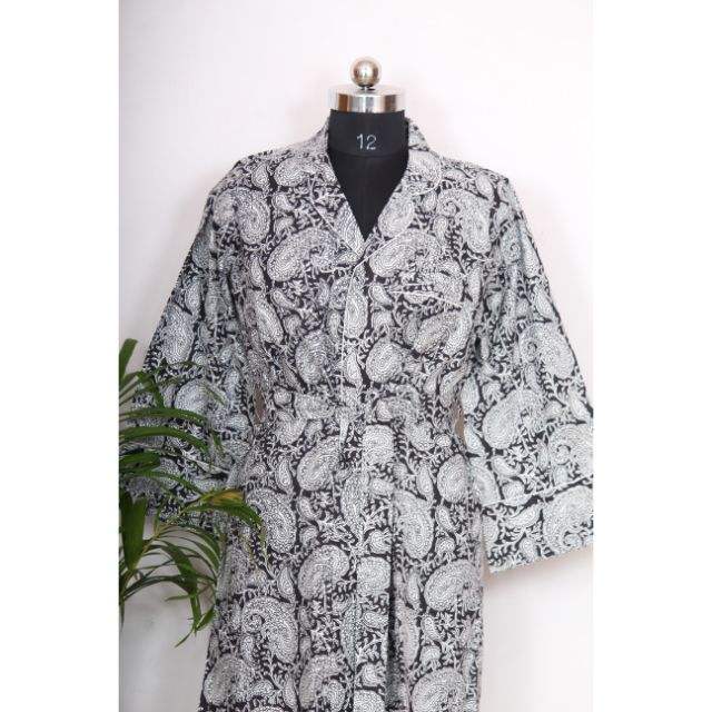 เสื้อเบลาส์ผ้าฝ้ายสไตล์โบฮีเมียนสำหรับผู้หญิงเสื้อแจ็กเก็ตพิมพ์ลาย Paisley ทำด้วยมือมีกระดุมสำหรับตกแต่งรอบเอวธรรมชาติไซส์ใหญ่พิเศษ