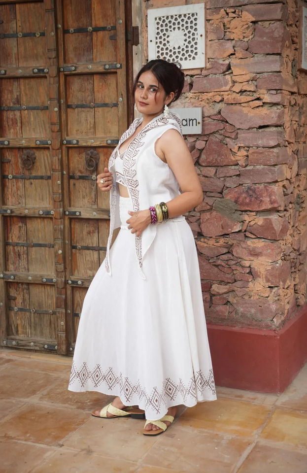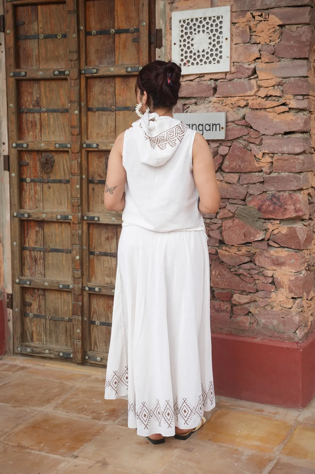 Boho ชุดเสื้อผ้า3ชิ้น100% ลำลองผ้าฝ้ายออร์แกนิก, เสื้อตัวสั้น & กระโปรงพิมพ์ลายชนเผ่ายาวถึงข้อเท้าพร้อมเสื้อคล้องคอแบบมีฮู้ด