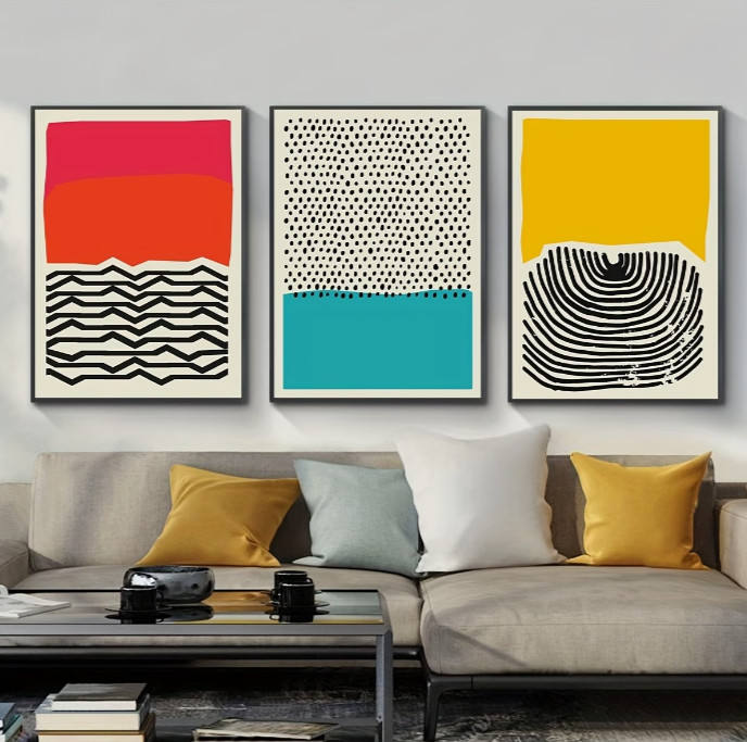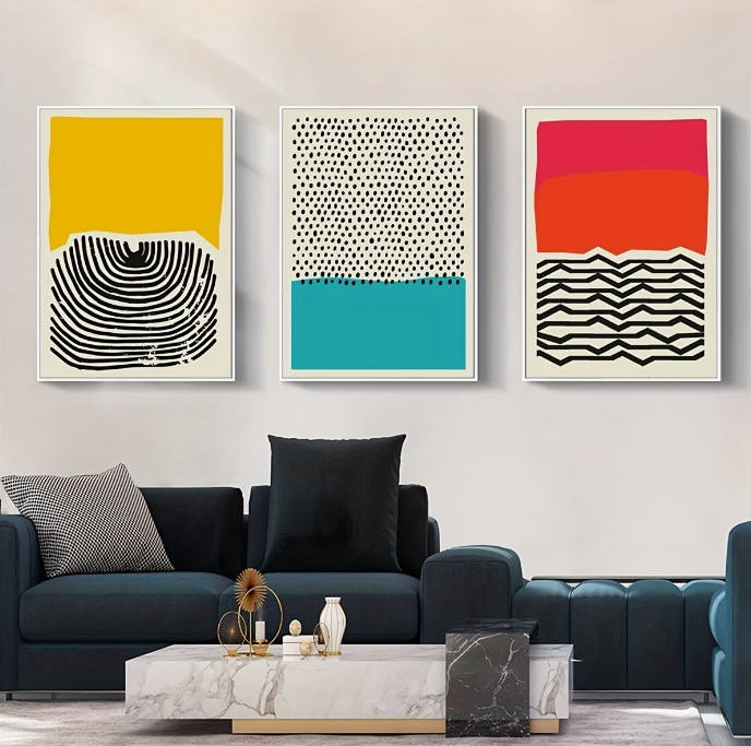 ภาพวาดบนผ้าใบลายเรขาคณิตสำหรับห้องนั่งเล่น
