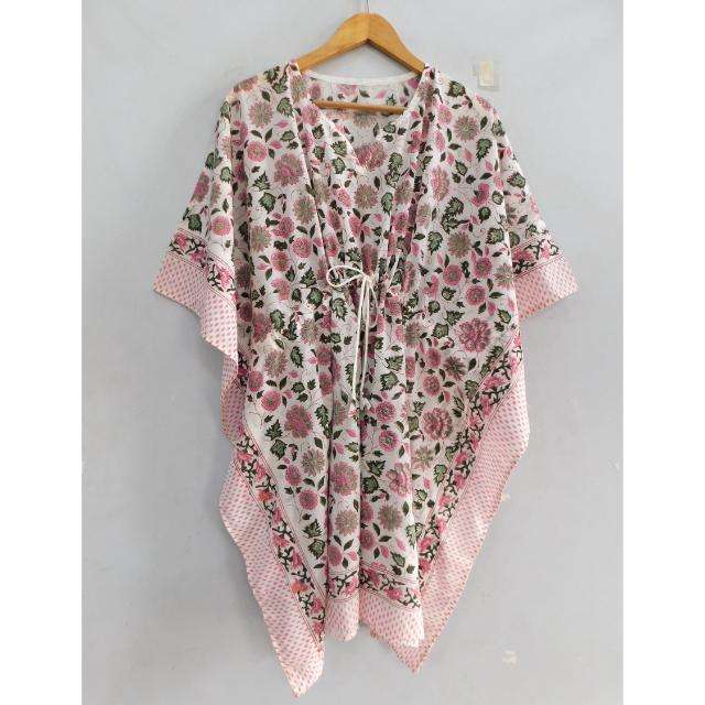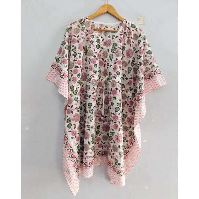 ชุดเดรสผ้าฝ้ายพิมพ์ลายโบโฮ คอวี แขนทรงปีกค้างคาว ทำมือ เป็นมิตรกับสิ่งแวดล้อม ระบายอากาศได้ดี เหมาะสำหรับใส่ไปชายหาด ทรงหลวม