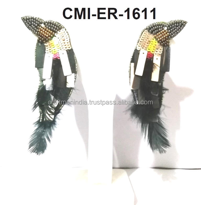 ตุ้มหูปีกนกสไตล์โบฮีเมียนเก๋ไก๋มีเอกลักษณ์สไตล์คลาสสิกประดับลูกปัดแฟชั่นเครื่องประดับหู
