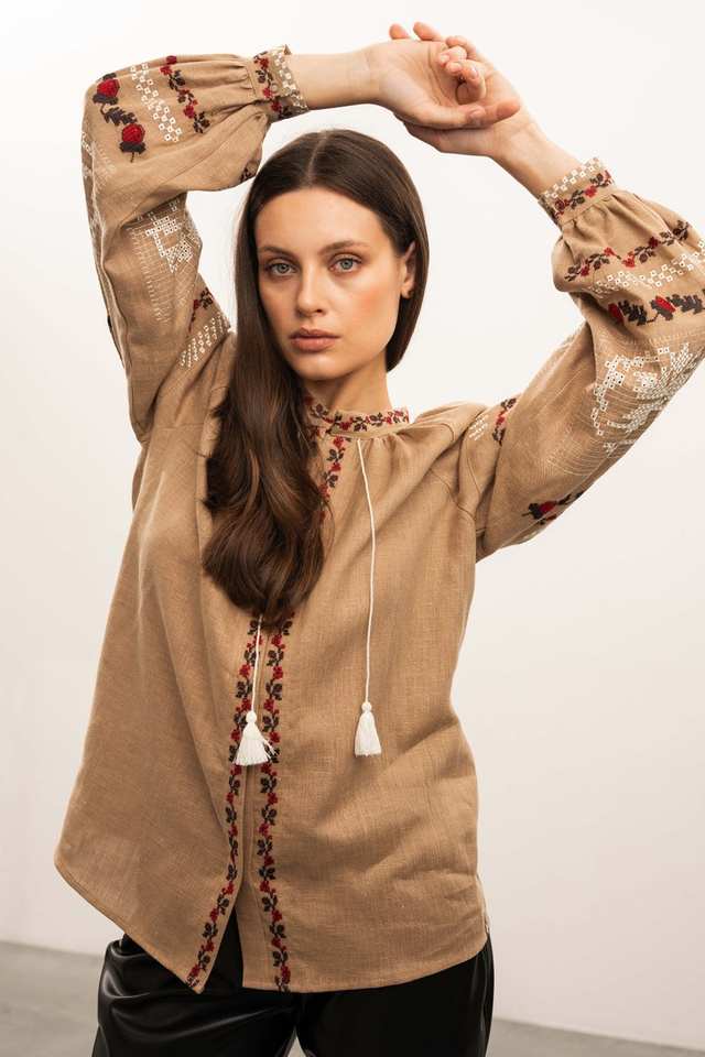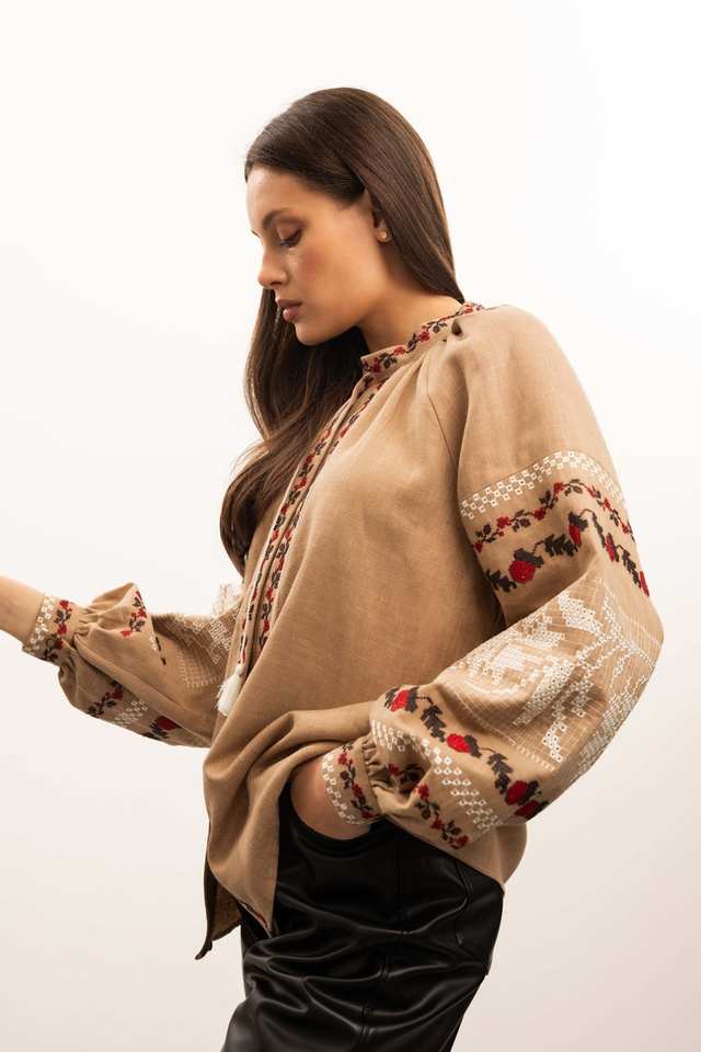 เสื้อเบลาส์ผ้าลินินปักลายสไตล์โบโฮชิคแบบลำลอง | เสื้อทรงชาวนาแขนบอลลูนสไตล์วินเทจ แต่งพู่ สำหรับใส่เป็นเสื้อนอกช่วงฤดูร้อน รับผลิตแบบ ODM