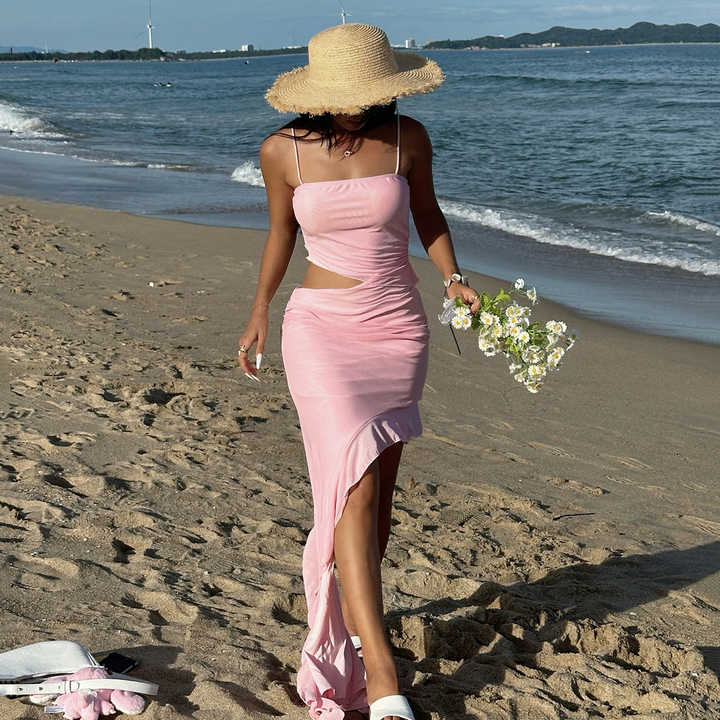 ชุดเดรสสไตล์โบโฮชิคสำหรับงานกลางคืน ดีไซน์ชายกระโปรงไม่สมมาตร พร้อมดีเทลระบายพลิ้วไหวและช่วงข้างตัดเว้า