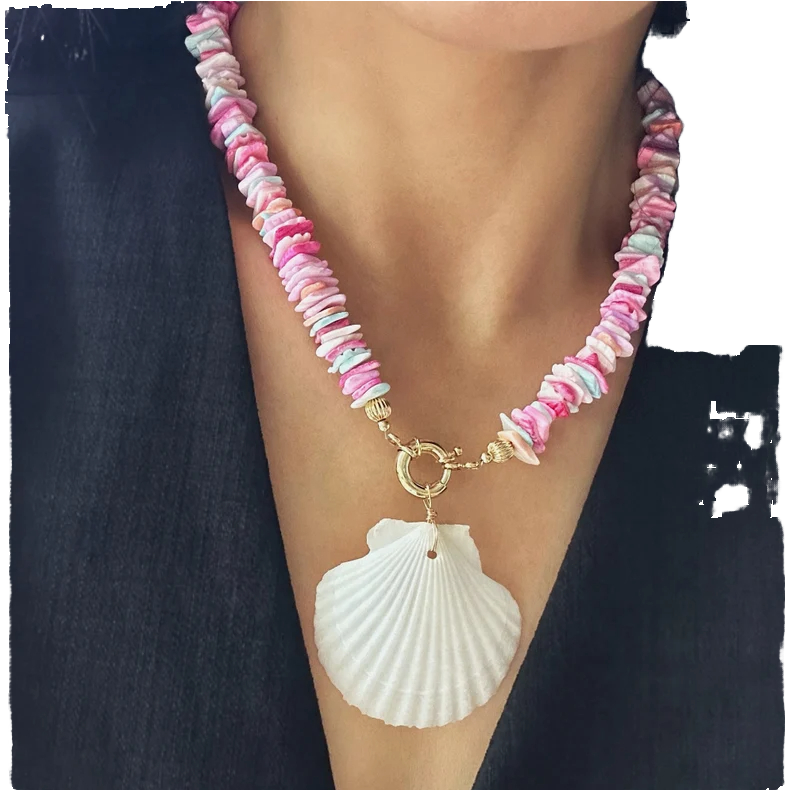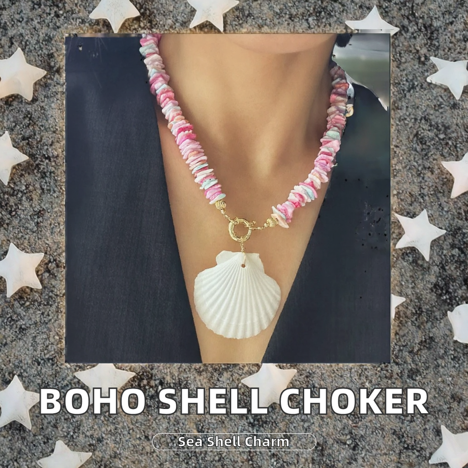 สร้อยคอเปลือกหอยธรรมชาติสไตล์โบฮีเมียนสุดเก๋มาการองหอยนางเงือกสีสันสดใสสร้อยลูกปัดทันสมัยสำหรับเป็นของขวัญ