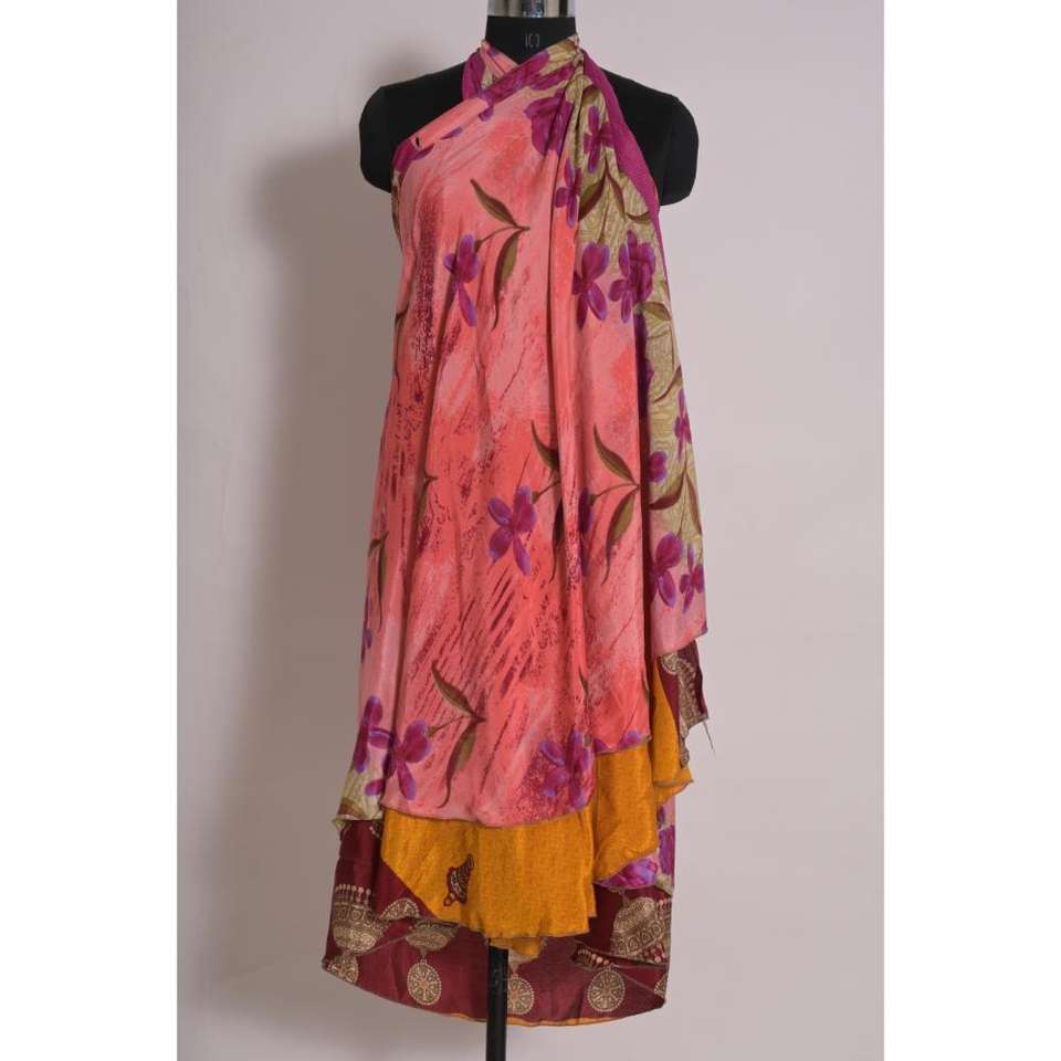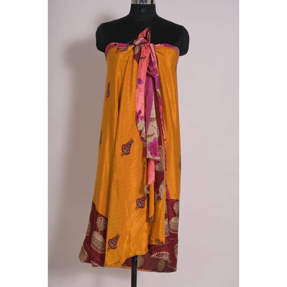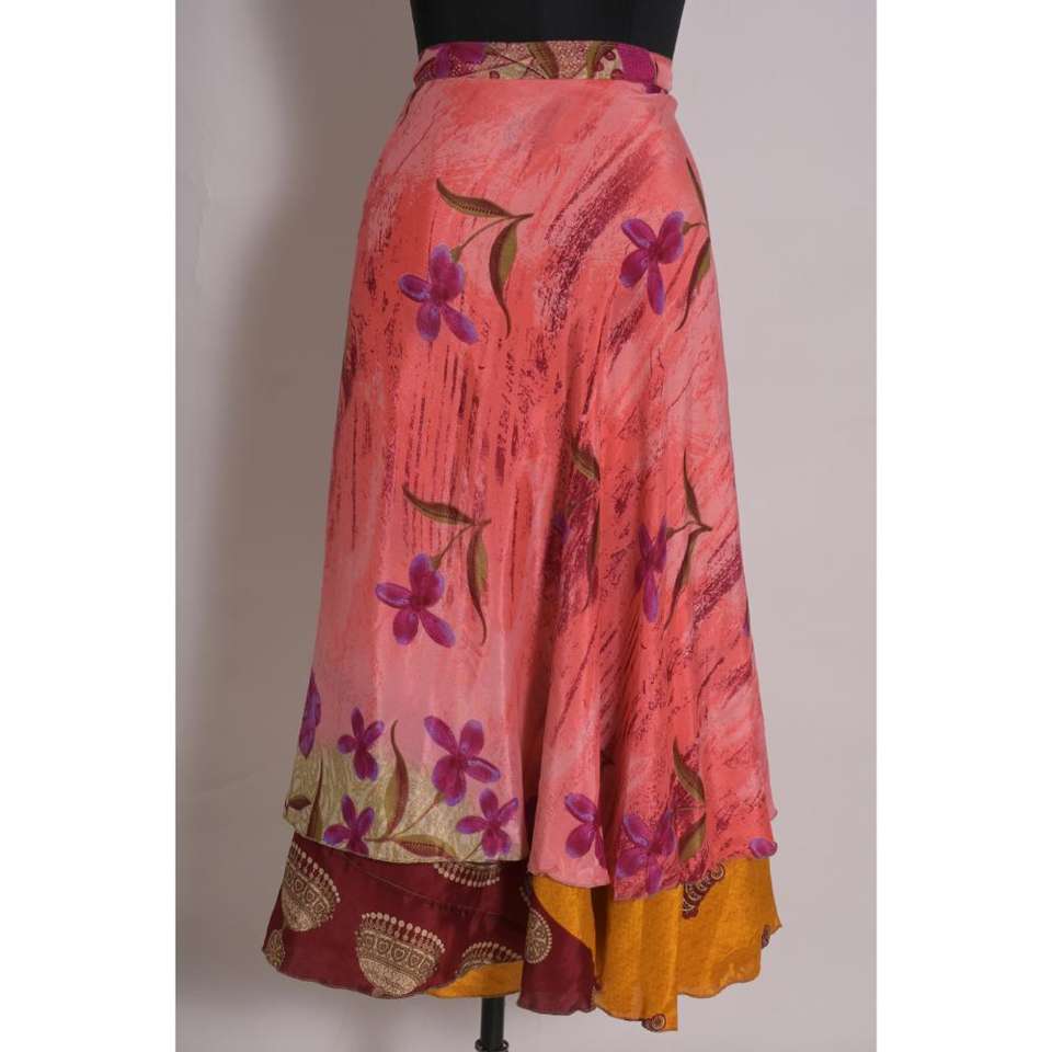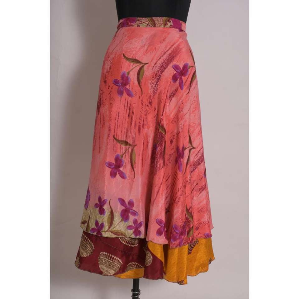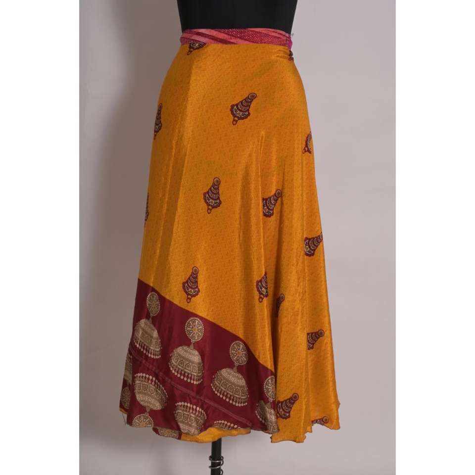 กระโปรงส่าหรีแบบโบฮีเมียนเก๋กลับด้านได้กระโปรงห่อผ้าไหมอินเดียวินเทจสำหรับผู้หญิงแฟชั่นชุดชายหาดและงานเทศกาล