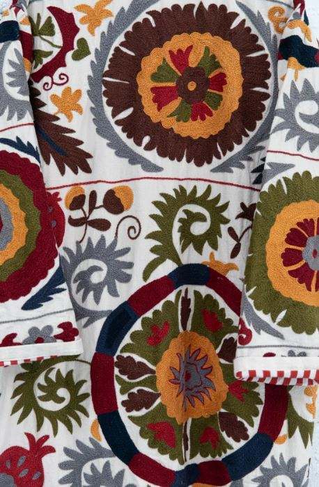Suzani Boho เก๋ไก๋แจ็คเก็ตยาวปักลายดอกไม้ suzani สำหรับผู้หญิงแจ็คเก็ตปักลายดอกไม้
