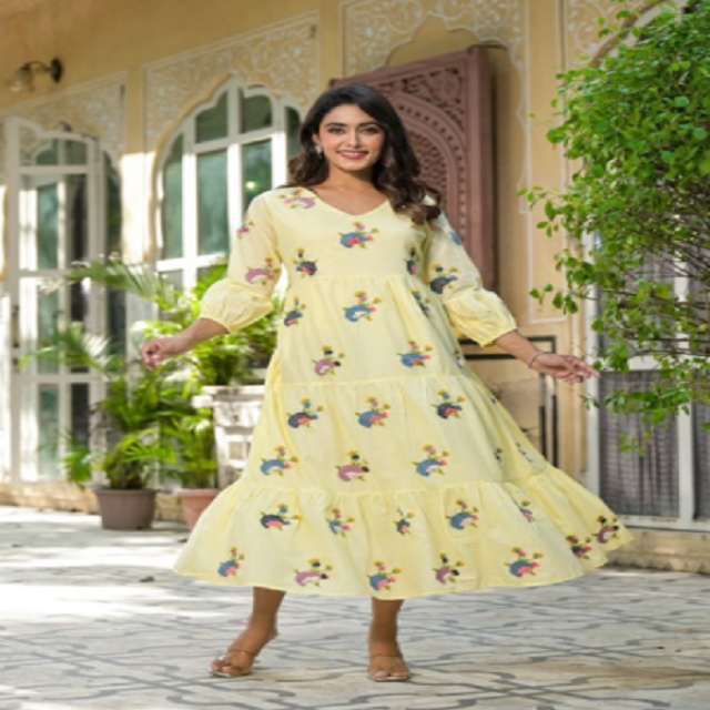 Boho Chic Womens Long Dress-Floral Print Ethnic Tiered Maxi with Puff Sleeves A-Line Silhouette for Summer & Daily Wear Stylish
