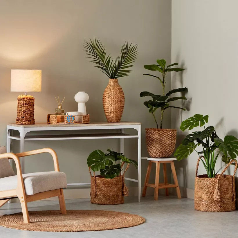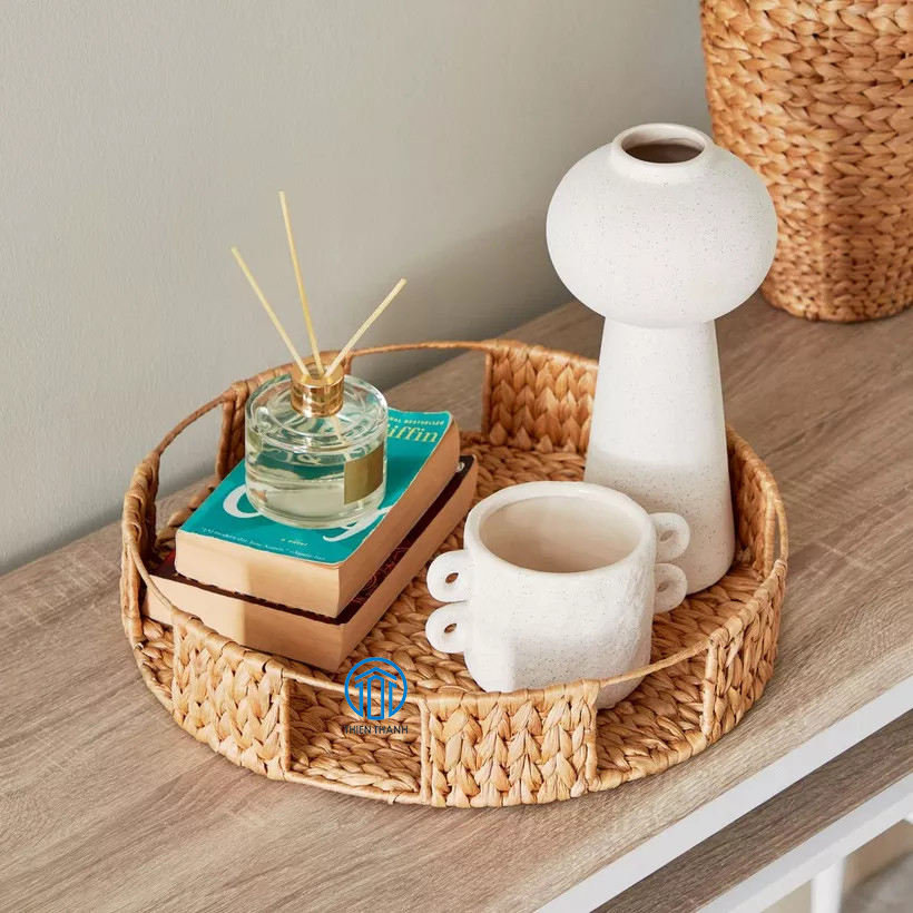 Boho coastal Decor สัมผัสธรรมชาติในบ้านของคุณ, ถาดรองน้ำผักตบชวาถักด้วยมือของช่างฝีมือชาวเวียดนาม