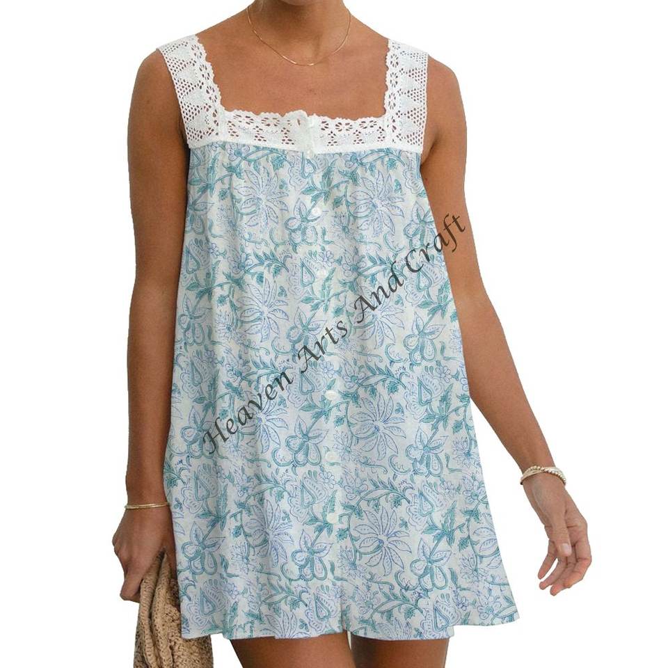ชุดเดรสผ้าฝ้ายพิมพ์ลายบล็อกสไตล์โบฮีเมียนสำหรับผู้หญิง ตกแต่งด้วยลูกไม้ทำมือ ลายดอกไม้ สวมใส่สบายและมีสไตล์ ผลิตในอินเดีย