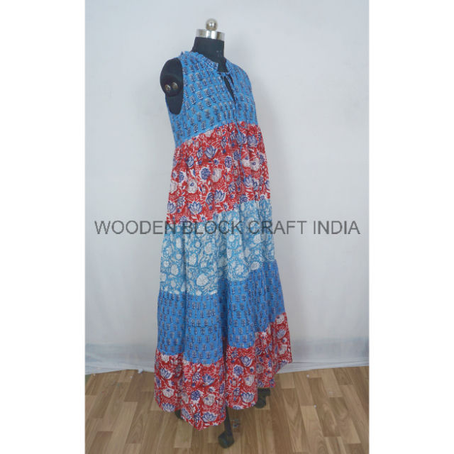 Boho เดรสแม็กซี่แขนกุดพิมพ์ลายดอกไม้, เดรสลำลองสไตล์อินเดียงานเย็บปัก