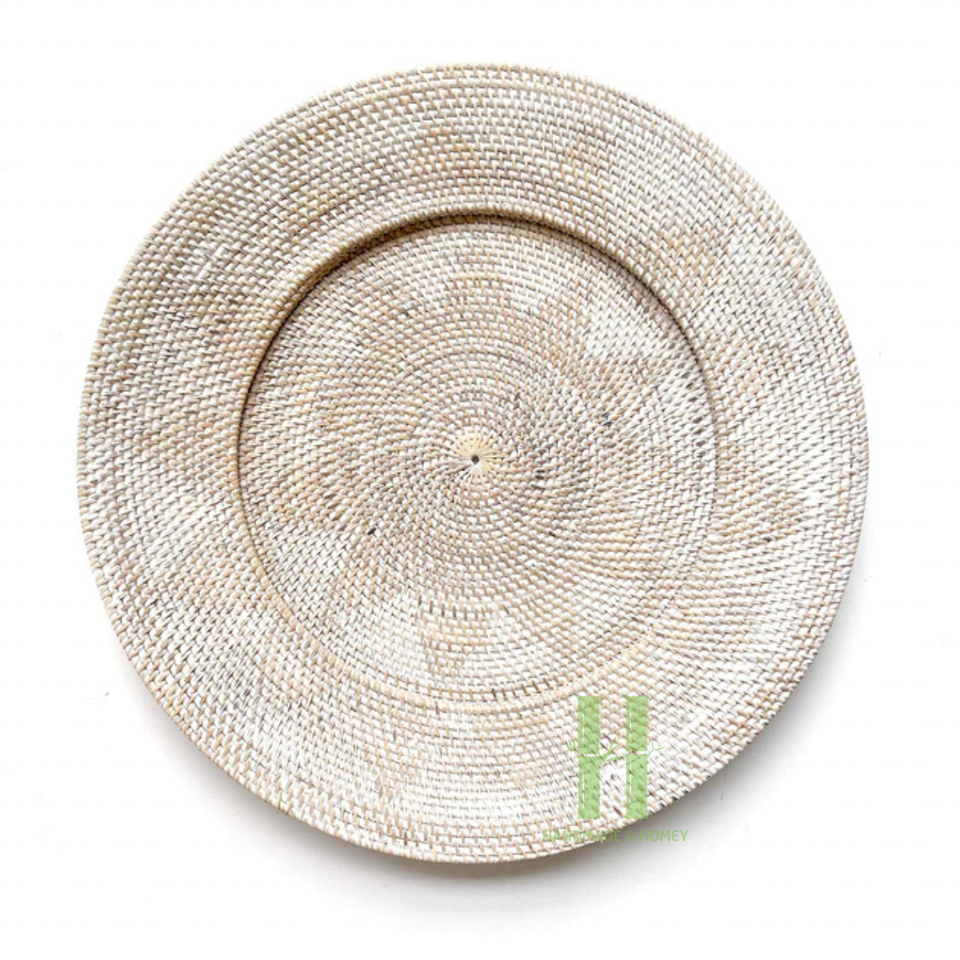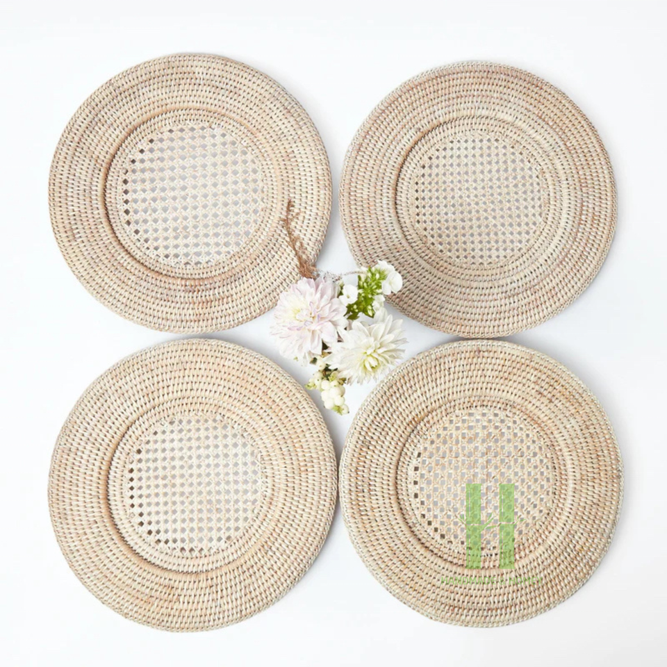 Boho Decor แผ่นชาร์จหวายแผ่นรองจานสีน้ําตาลชนบทสําหรับโต๊ะรับประทานอาหารตกแต่งที่กําหนดเองจากโรงงานเวียดนาม