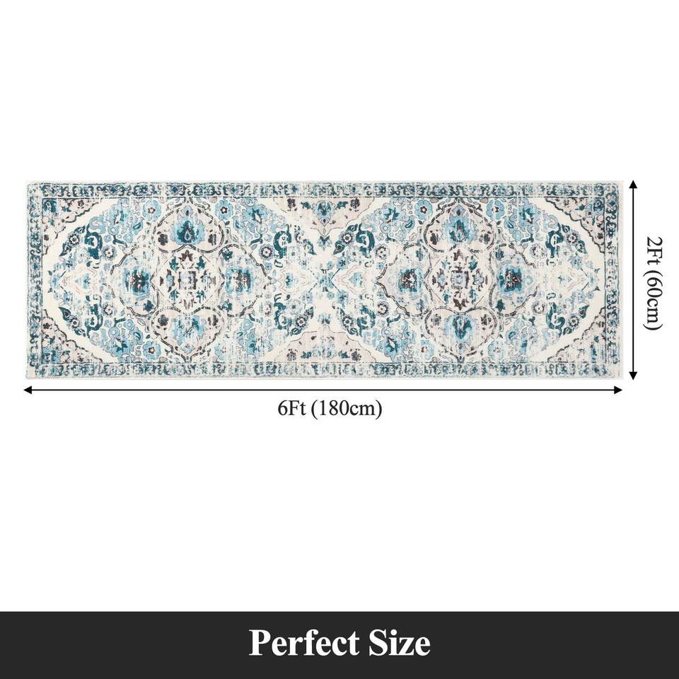 พรมปูพื้นสไตล์โบฮีเมียนแบบวินเทจ ลายตะวันออก กันลื่น ซักเครื่องได้ เหมาะสำหรับห้องนอน ห้องครัว ห้องนั่งเล่น ห้องซักผ้า