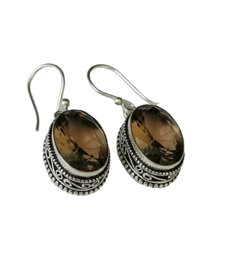 ต่างหูโบโฮ คอมโบ หินสโมคกี้ควอตซ์ รูปหัวใจ ต่างหูแบบห้อย สีเงิน คอมโบสองหิน สง่างาม มีสไตล์ อินเทรนด์ ของขวัญสำหรับทุกเพศ