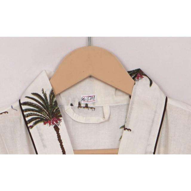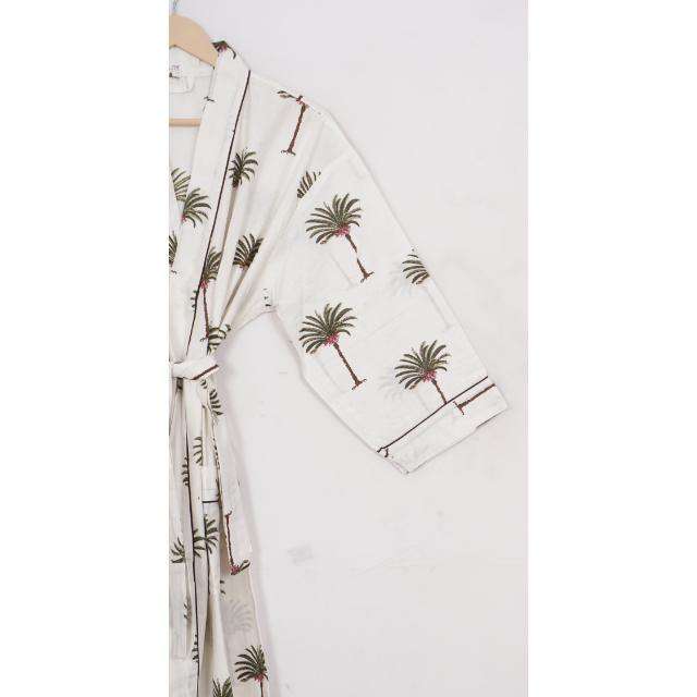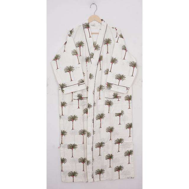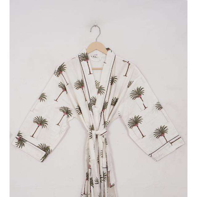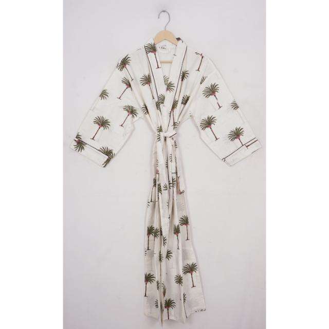 เสื้อคลุมกิโมโนผ้าฝ้ายลายดอกไม้สไตล์โบฮีเมียนเสื้อคลุมอาบน้ำพิมพ์ลายบล็อกยาวน้ำหนักเบาเสื้อคลุมเลานจ์ผูกเอวชุดคลุมสำหรับใส่ในรีสอร์ท