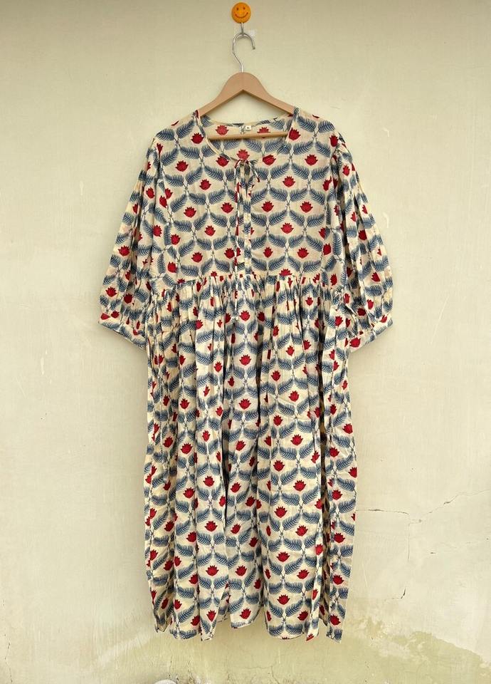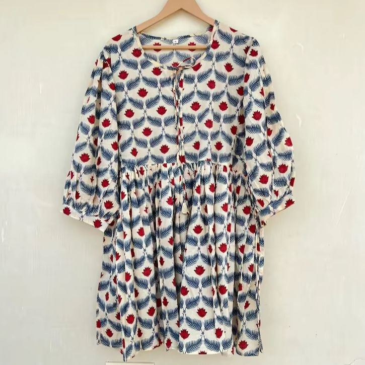 Boho Floral Cotton Mini Midi Dress Trendy New Summer Short Dress for Women with Deep Neck String Closure Flower Print Dresses