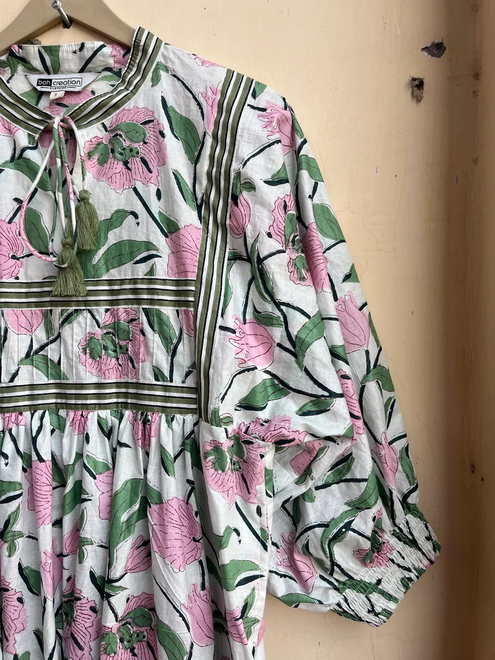 เดรสยาวพิมพ์ลายดอกไม้สไตล์โบฮีเมียนสำหรับผู้หญิงไซส์พลัส ชุดเดรสผ้าฝ้ายสำหรับฤดูร้อน พร้อมลายปักและพู่ห้อย สไตล์ลำลอง