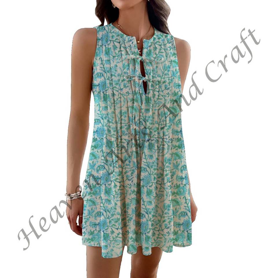Boho ชุดเดรสผ้าฝ้ายพิมพ์ลายชนเผ่าฮิปปี้โบฮีเมียน, เดรสผ้าฝ้ายเฮม-เสื้อคล้องคอเสื้อครึ่งตัวมีสายผูกคอเสื้ออินเดียและปากีสถาน