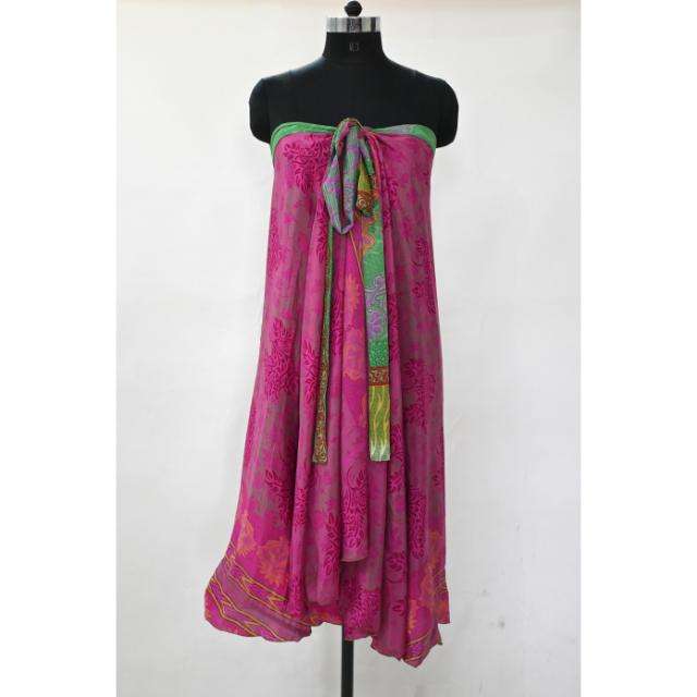 กระโปรงผ้าไหมส่าหรีสไตล์ยิปซีวินเทจแบบกลับด้านได้ชุดยาว Maxi ลำลองฤดูร้อนสำหรับผู้หญิงทำด้วยมือธรรมชาติอินเดีย