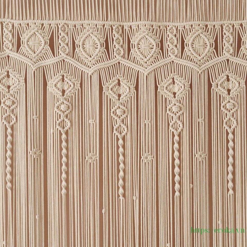 ผ้าม่านแขวนประตูสไตล์โบโฮทำมือ ผ้าฝ้ายแท้ 100% ขนาดใหญ่ สำหรับตกแต่งวันครบรอบ จากเวียดนาม