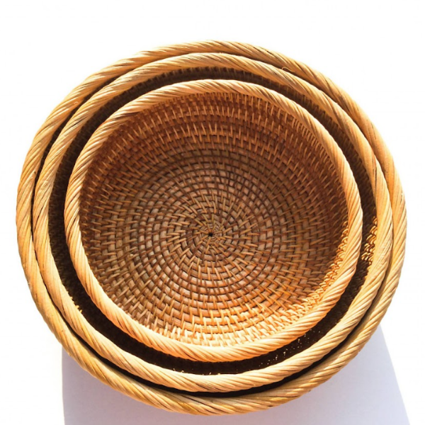 ชามไม้ไผ่สานแบบทำมือสไตล์โบโฮสำหรับใช้บนโต๊ะอาหารรักษ์โลก
