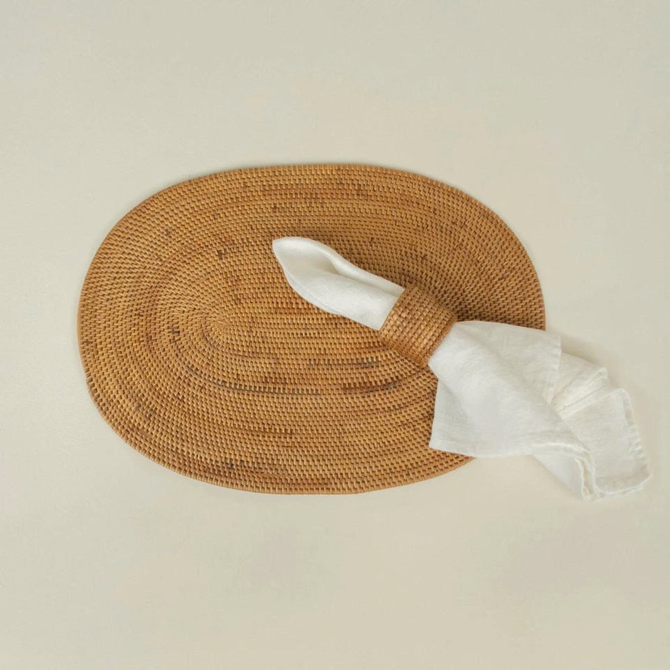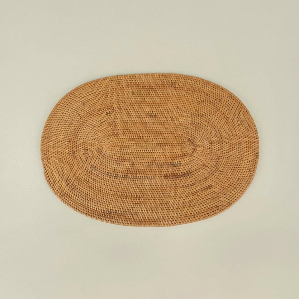 แผ่นรองจานรูปวงรีหวายสานมือสไตล์โบโฮ แผ่นรองโต๊ะหวายธรรมชาติ สำหรับร้านอาหารและใช้ในบ้าน ราคาขายส่ง