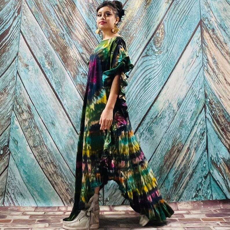 เสื้อเจอร์ซีย์ผ้าฝ้ายมัดมือยาวถึงพื้นสไตล์โบฮีเมียนยาวถึงพื้นสไตล์ฮิปปี้