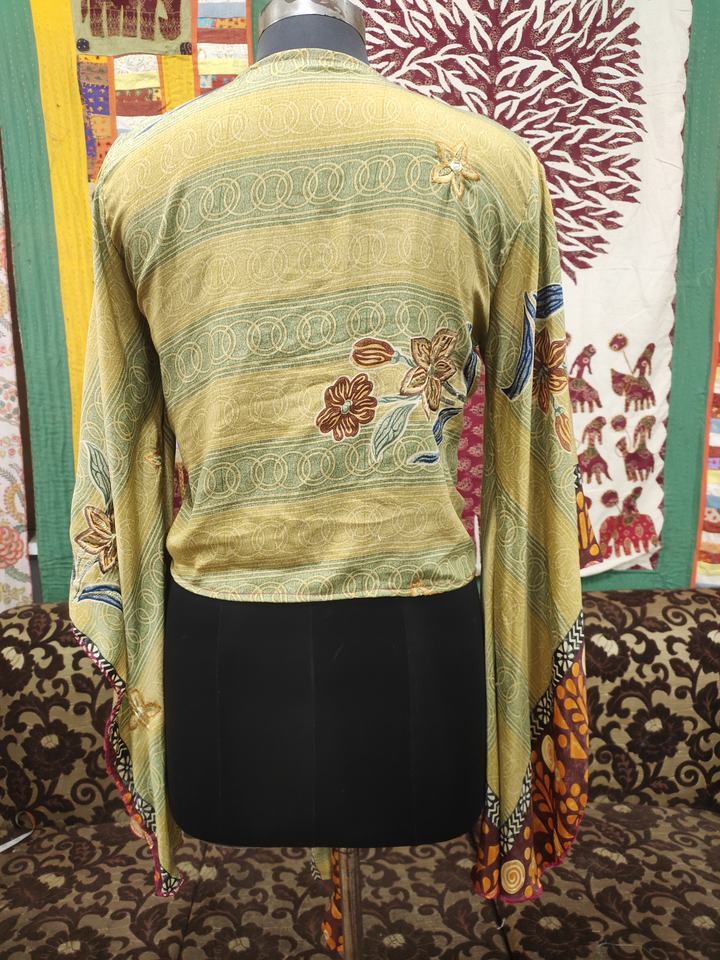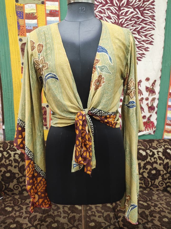 เสื้อเกาะอกผ้าไหมส่าหรีสไตล์โบฮีเมียนสำหรับผู้หญิงมีเชือกผูกด้านหน้ายาวครอปและคอ V ลึกเหมาะสำหรับสวมใส่สบายๆหรือชายหาด