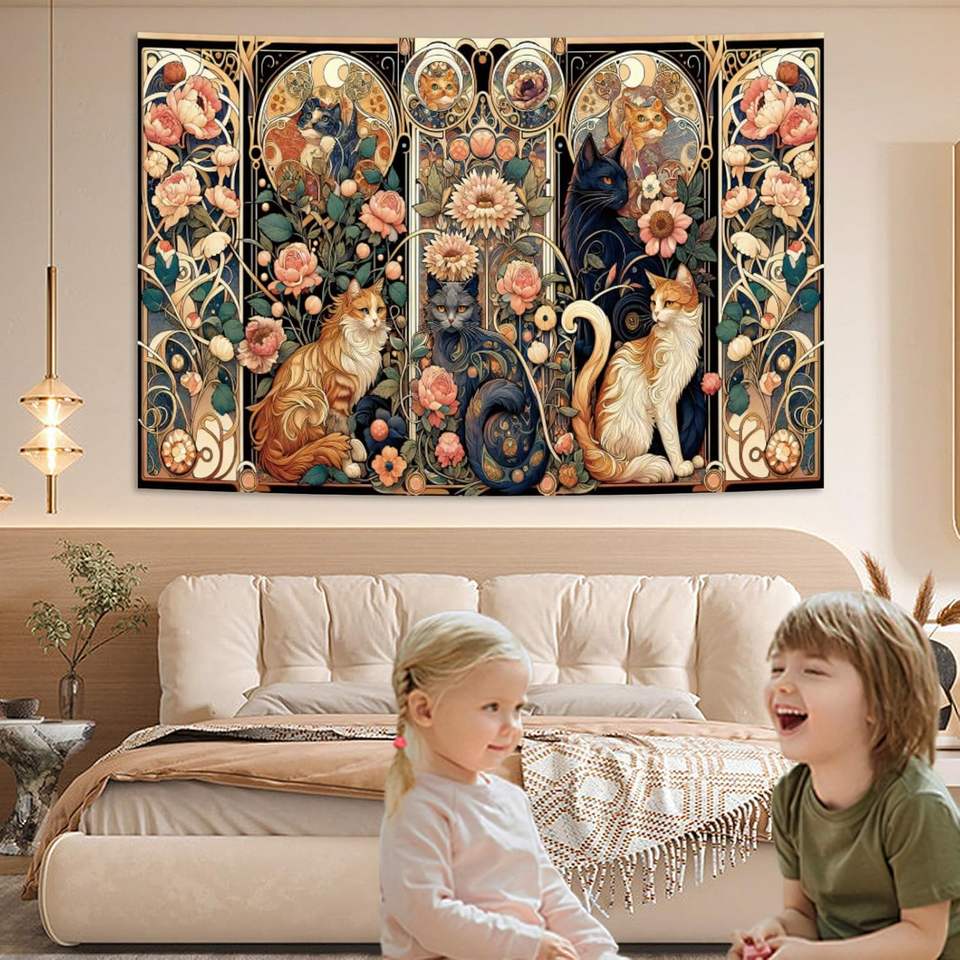พรมติดผนังสไตล์โบฮีเมียนโบฮีเมียนแนววินเทจตกแต่งลายดอกไม้สีส้มแมนดาลาแบบอินเดียสำหรับห้องนอนฮาโลวีนที่สวยงาม
