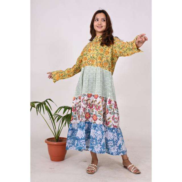 ชุดเดรสยาวผ้าฝ้ายงานเย็บปะแบบอินเดียโบโฮเดรสแม็กซี่พิมพ์ลายบล็อกทำด้วยมือสำหรับผู้หญิงใส่ในงานเทศกาลและชุดราตรี